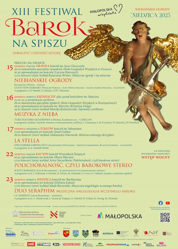Tegoroczna, dwunasta festiwalu Barok na Spiszu odbędzie się w dniach od 15 do 23 sierpniaProgram