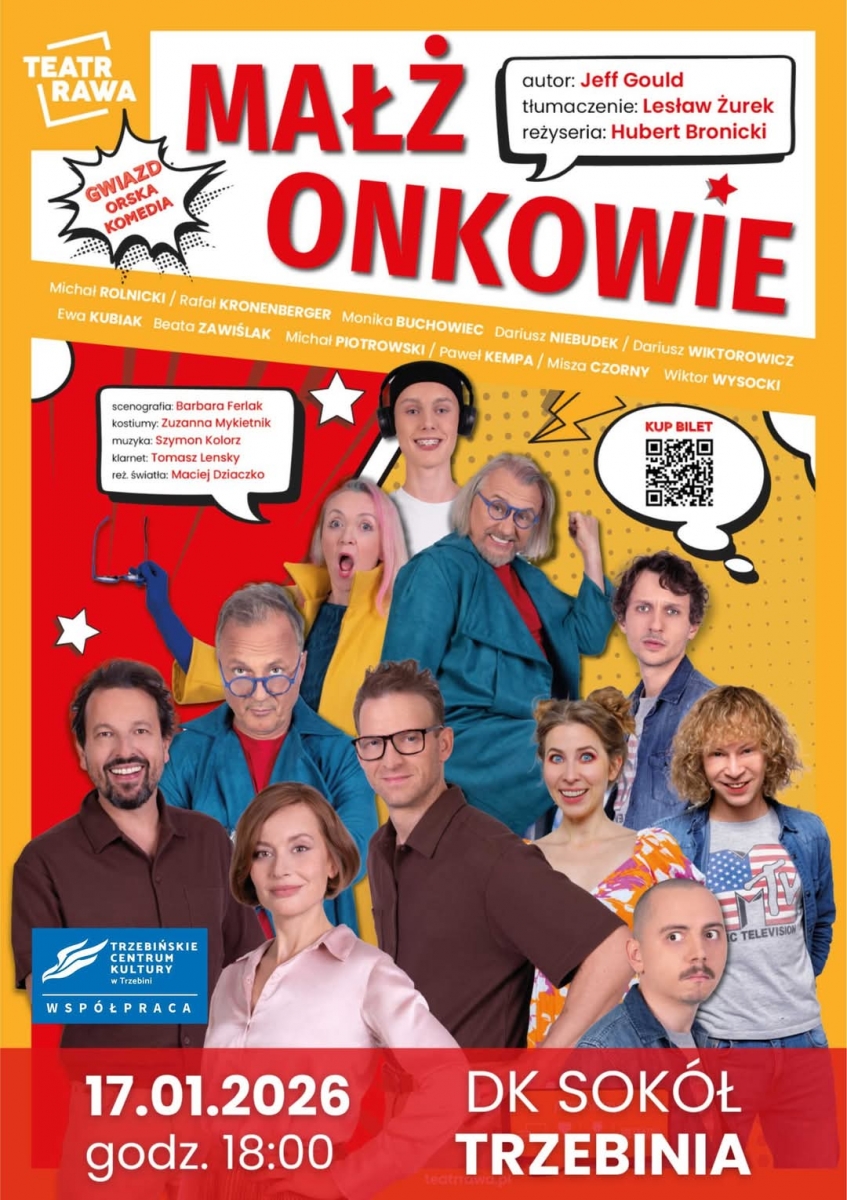 Trzebińskie Centrum Kultury zaprasza w sobotę 17 styczeń 2026 o godz 18:00 na pełną nieoczekiwanych zwrotów akcji i niesamowicie dowcipnych dialogów komedie na scenie Domu Kultury „SOKÓŁ” w TrzebiniZ pozoru zwyczajne popołudnie, podczas którego Elizabeth i Michael, małżeństwo z dwudziestoletnim stażem, prowadzą swoją codzienną sprzeczkę. Ona pragnie aby wszystko było w życiu idealne, a on chce jeszcze lepiej zarabiać i mieć odrobinę świętego spokoju. Rutynę dnia przerywają nieoczekiwani goście: nieprzyzwoicie namiętni młodzi kochankowie oraz odrobinę cyniczna ex-para sześćdziesięciolatków. W trakcie rozmowy, Beth i Cal orientują się, że goście to nikt inny jak oni sami z przeszłości i przyszłości. Narzeczeni wzbudzają w nich zazdrość i zachwyt. Ex-para ujmuje dystansem i poczuciem humoru.