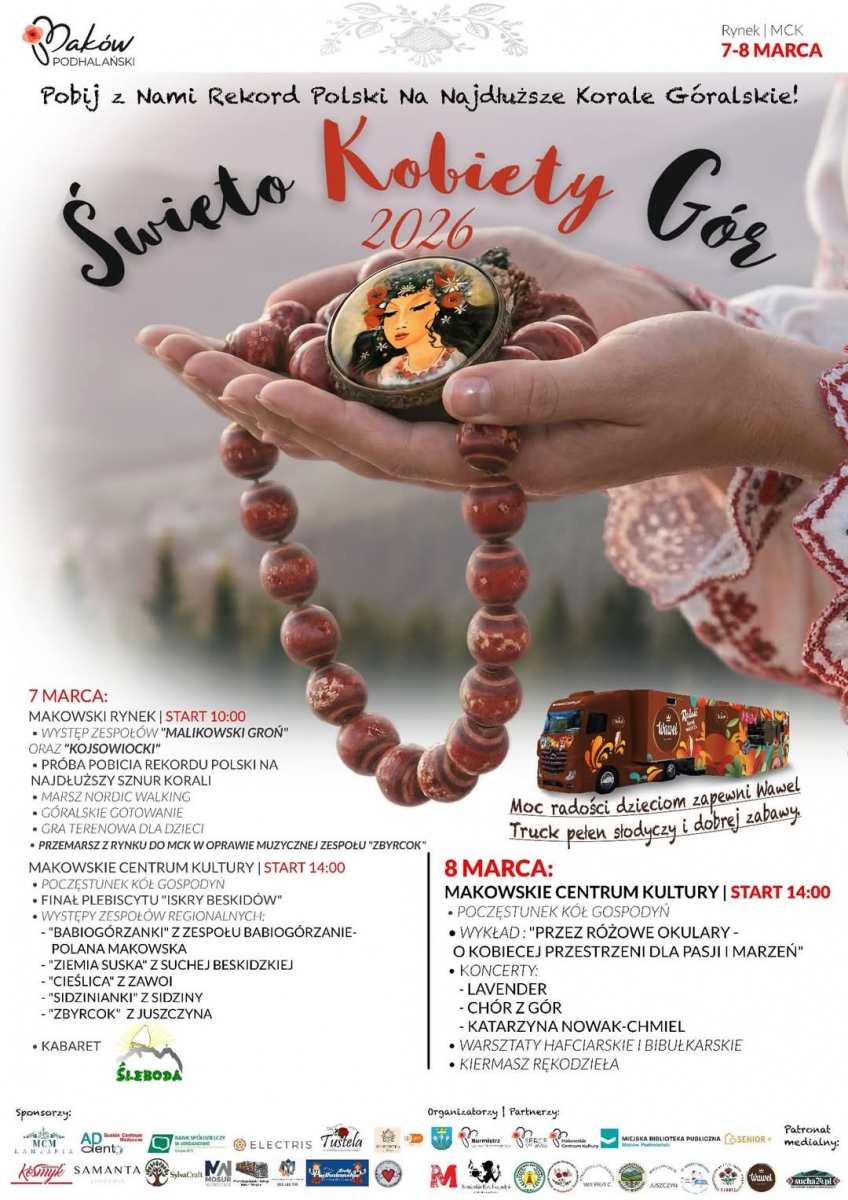 Już 7–8 marca 2026 Maków Podhalański serdecznie zaprasza na wyjątkowe święto pełne tradycji, muzyki, radości i kobiecej energiiPobijmy razem Rekord Polski na najdłuższe korale góralskie