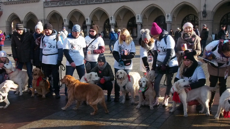 Podczas WOŚP w Krakowie wraz ze swoimi opiekunami w okolicy Rynku Głównego kwestowały również Golden retrievery,które tłumnie pojawiły się na rogu ul. Szewskiej i Rynku Głównego.
