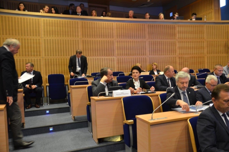 Wicepremier Beata Szydło, minister infrastruktury Andrzej Adamczyk, posłowie PiS, prezes lotnika w Balicach Radosław Włoszek zjechali na pierwszą sesję sejmiku małopolskiego.