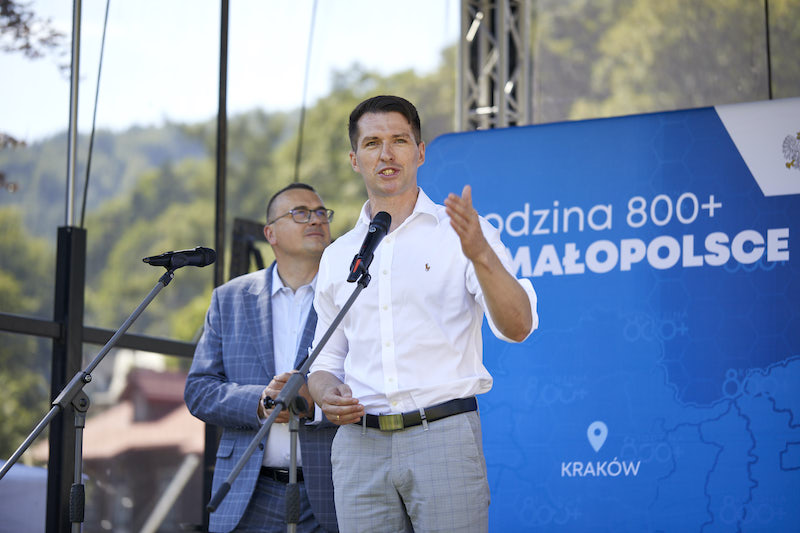 Deptak w Krynicy-Zdroju wypełniły dziś gwar, radość i beztroska. To tu odbył się kolejny „Piknik rodzinny 800+”. Uczestnicy mieli okazję spędzić czas na wspólnej zabawie i rozmowach o polskiej rodzinie. Towarzyszył im II wicewojewoda małopolski Mateusz Małodziński.