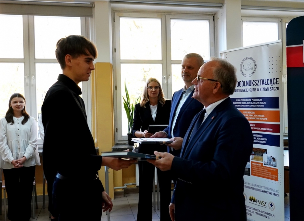 To już kolejny dzień uroczystości, podczas których najlepsi uczniowie szkół ponadpodstawowych prowadzonych przez Powiat Nowosądecki odbierają stypendia naukowe Starosty Nowosądeckiego. Wyróżnienia trafiły do 61 uczniów, którzy osiągnęli znakomite wyniki w nauce – w tym średnią ocen powyżej 5.0.