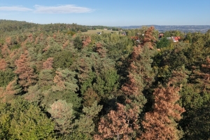 Jest czerwiec 2025 roku. Przez lasy Nadleśnictwa Krzeszowice przechodzi nawałnica gradowa. W mediach społecznościowych ludzie przesyłają sobie zdjęcia dużych lodowych kulek wielkości pokaźnych śliwek. Początkowo las nie wykazuje żadnych niepokojących zmian. Po dwóch miesiącach już wiadomo, że sosny bardzo ucierpiały.