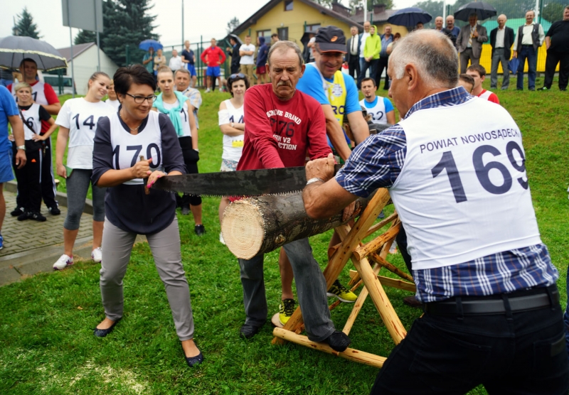 Bieg na 100 i 4200 metrów, skoki w dal, cięcie drewnianej kłody na czas i przeciąganie liny – między innymi w takich konkurencjach zmierzyli się dziś na stadionie w Nawojowej samorządowcy z Sądecczyzny. Odbyła się tam I Powiatowa Spartakiada Samorządu i Służb Mundurowych. Wzięła w niej udział liczna reprezentacja powiatowego samorządu ze starostą Markiem Pławiakiem na czele. Obecni też byli wicestarosta Antoni Koszyk, członek Zarządu Powiatu Franciszek Kantor i radny wojewódzki Witold Kozłowski.