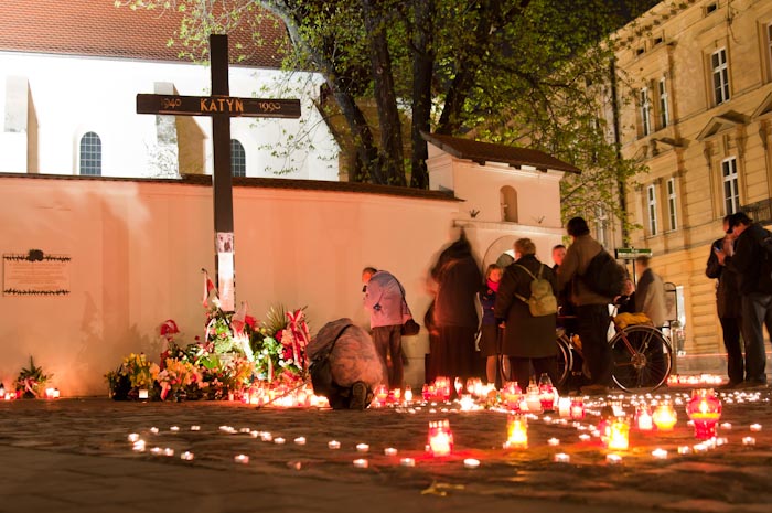 Msza św., koncert oraz trzy różne demonstracje zorganizowano w poniedziałek w Krakowie - w rocznicę pogrzebu pary prezydenckiej. Politycy PiS złożyli kwiaty na grobie Lecha i Marii Kaczyńskich.