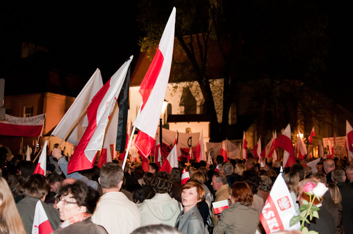 Msza św., koncert oraz trzy różne demonstracje zorganizowano w poniedziałek w Krakowie - w rocznicę pogrzebu pary prezydenckiej. Politycy PiS złożyli kwiaty na grobie Lecha i Marii Kaczyńskich.