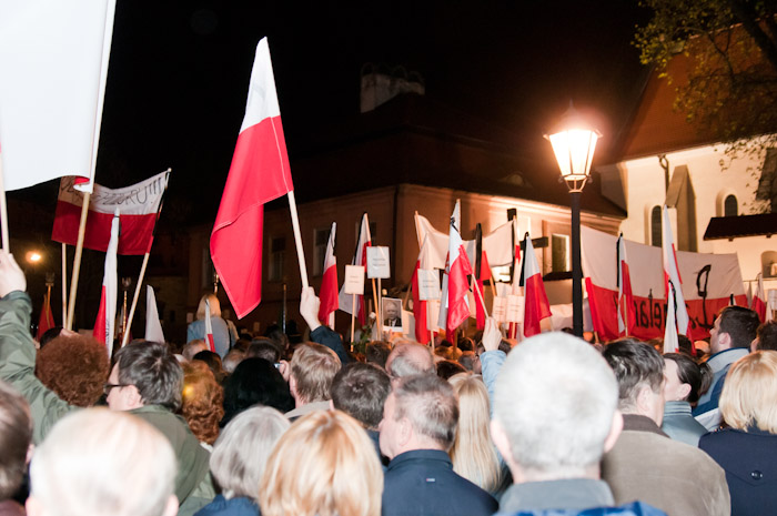 Msza św., koncert oraz trzy różne demonstracje zorganizowano w poniedziałek w Krakowie - w rocznicę pogrzebu pary prezydenckiej. Politycy PiS złożyli kwiaty na grobie Lecha i Marii Kaczyńskich.
