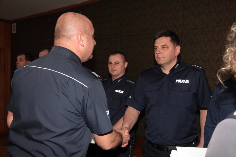 Małopolski Komendant Wojewódzki Policji nadinsp. Mariusz Dąbek pogratulował bohaterskiej postawy dwóm policjantom ruchu drogowego z Komendy Powiatowej Policji w Chrzanowie.